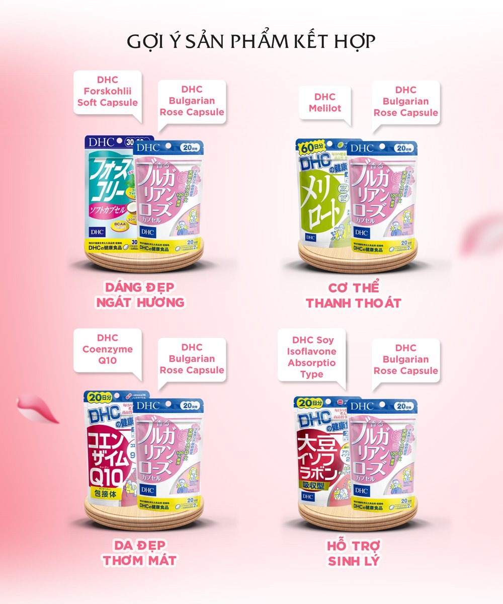Hoa hồng Bulgari được mệnh danh là “nữ hoàng hoa hồng” trong ngành hương liệu. DHC Bulgarian Rose Capsule sử dụng tinh dầu hoa hồng thu hoạch lúc sáng sớm. Đây là thời điểm hương thơm đạt đỉnh, mang lại mùi hương thanh khiết và sang trọng.
