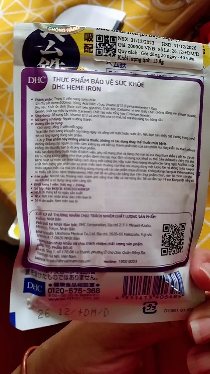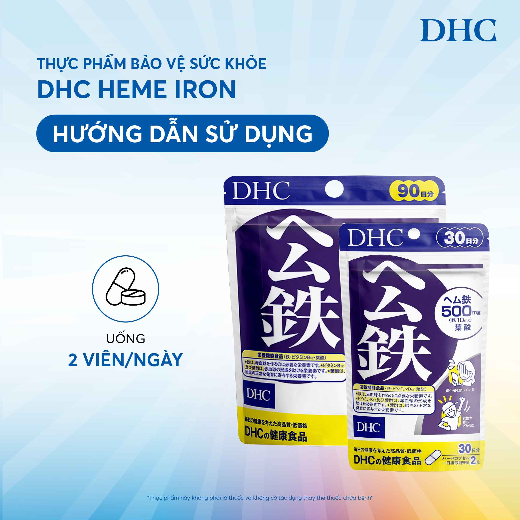 DHC Heme Iron là viên uống bổ sung sắt heme từ động vật. Đây là dạng sắt dễ hấp thu, thân thiện với dạ dày. Mỗi viên cung cấp 10mg sắt heme, kết hợp vitamin B12 và acid folic. Giúp hỗ trợ hình thành hồng cầu, cải thiện tình trạng thiếu máu. Giảm mệt mỏi, hoa mắt và chóng mặt.