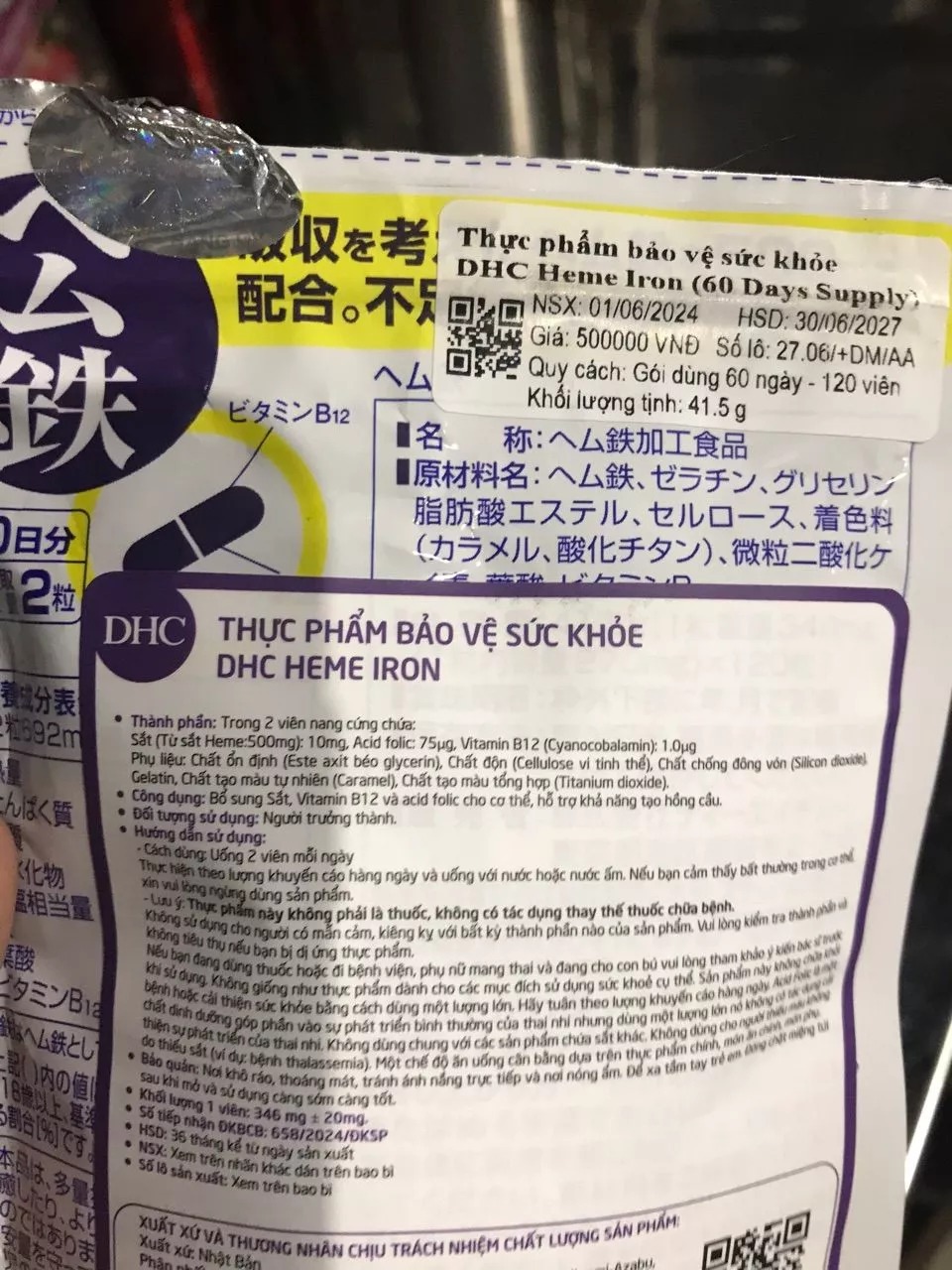Hướng dẫn sử dụng DHC Heme Iron 90 ngày