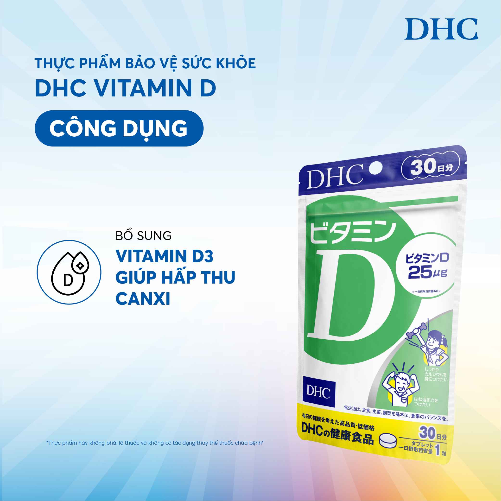 DHC vitamin D là viên uống bổ sung vitamin D3 đến từ thương hiệu DHC Nhật Bản. Giúp cung cấp hàm lượng vitamin D cần thiết cho cơ thể mỗi ngày một cách tiện lợi và kinh tế. Sản phẩm phù hợp với người lớn tuổi, người ít tiếp xúc ánh nắng mặt trời. Hoặc những ai quan tâm đến việc duy trì sức khỏe xương khớp và thể trạng tổng thể.