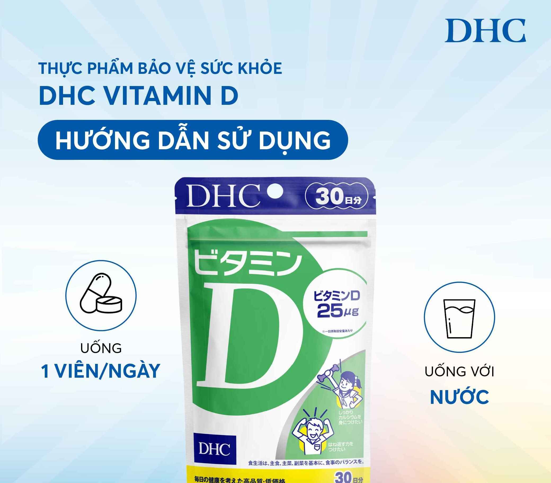 Mỗi viên DHC vitamin D cung cấp 25 µg vitamin D3/ngày. Phù hợp với liều khuyến nghị trong các hướng dẫn phòng ngừa loãng xương và duy trì sức khỏe cho người trưởng thành.