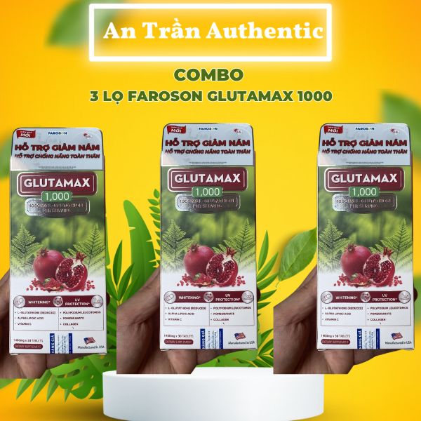 Faroson Glutamax 1000 là sản phẩm chăm sóc sức khỏe nhập khẩu từ Mỹ. Bạn có thể tìm mua Faroson Glutamax 1000 chính hãng tại An Trần Authentic. Bạn nên kiểm tra tem và nhãn mác của sản phẩm để đảm bảo sản phẩm chính hãng, có nguồn gốc xuất xứ rõ ràng. Hạn chế sử dụng các sản phẩm giá rẻ, "xách tay" không rõ nguồn gốc và không có tem mác đầy đủ.