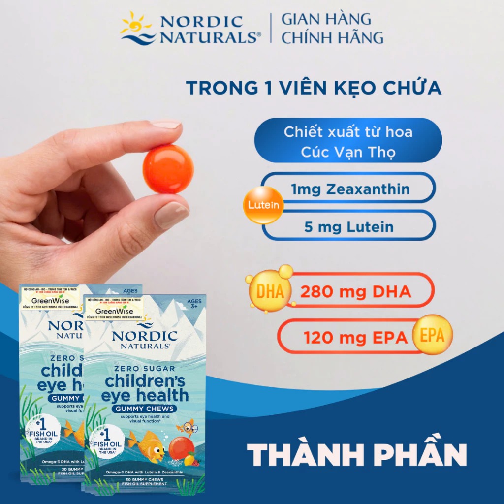 Kẹo dẻo DHA Nordic Naturals là sản phẩm bổ sung Omega-3 dạng gummy. Sản phẩm cung cấp DHA – axit béo thiết yếu hỗ trợ phát triển não bộ, thị lực và hệ thần kinh trong giai đoạn tăng trưởng quan trọng của trẻ. Kết cấu kẹo dẻo mềm, hương vị trái cây tự nhiên dễ ăn và công thức không chứa đường.