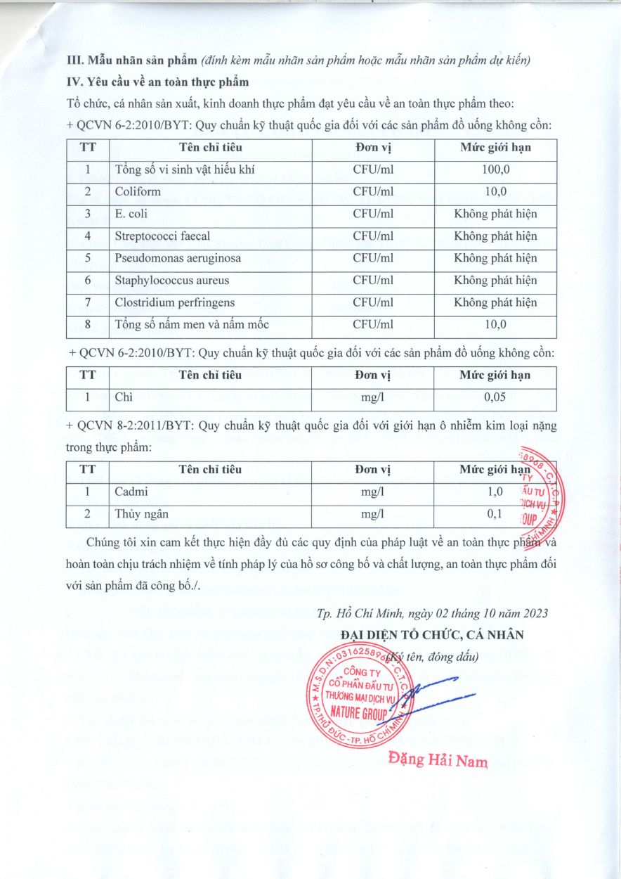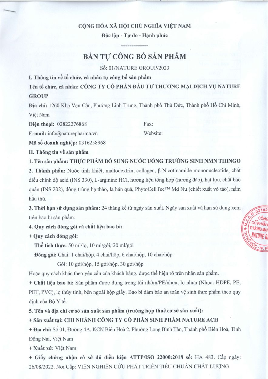 Có số công bố: TCB 01/NATURE GROUP/2023. Sản phẩm được cấp phép lưu hành tại Việt Nam.