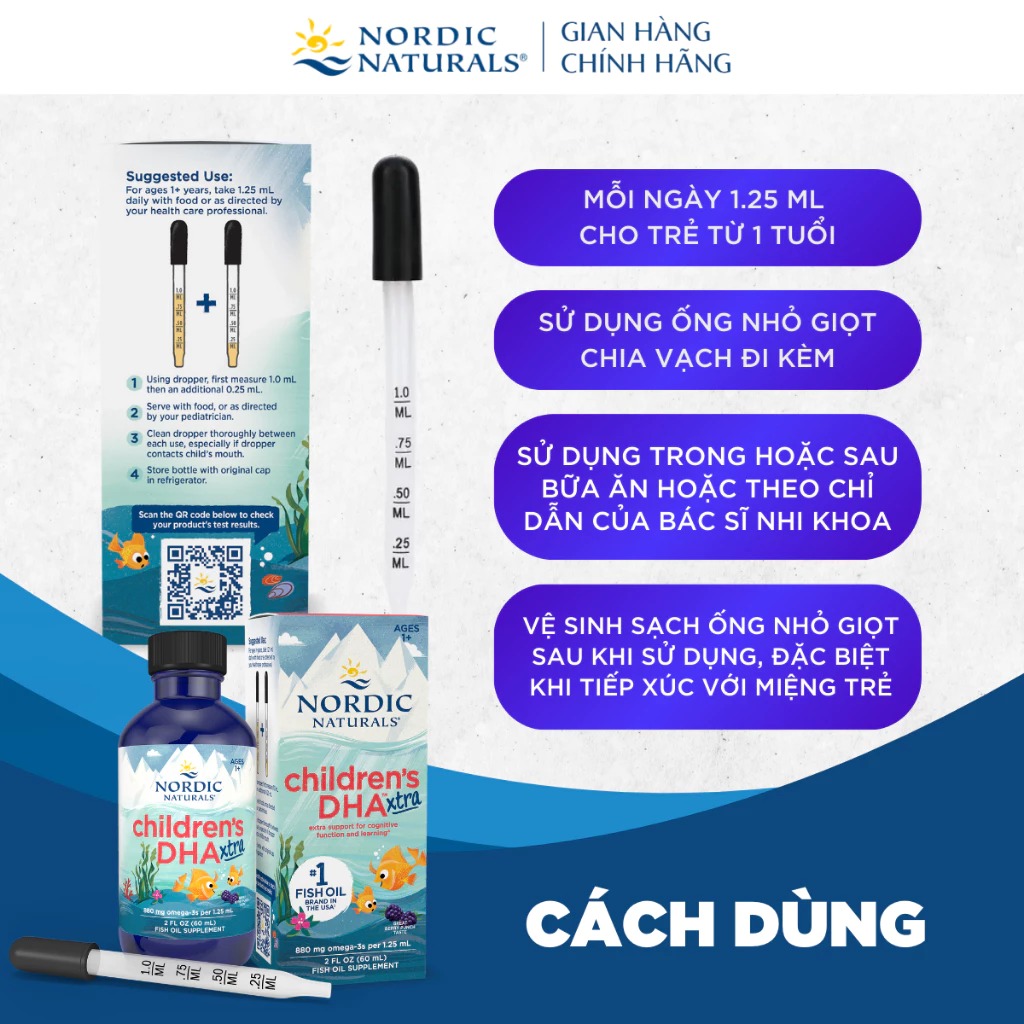 Siro Children DHA Xtra Nordic Naturals là dòng dầu cá tăng cường DHA. Được phát triển riêng cho trẻ từ 1–6 tuổi. Tập trung hỗ trợ não bộ, khả năng học tập và sự phát triển hành vi trong những năm đầu đời. Đây là phiên bản nâng cấp với hàm lượng DHA cao hơn. Phù hợp cho trẻ có nhu cầu bổ sung omega-3 chuyên sâu.